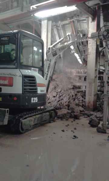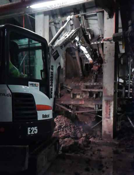 Einsatzbeispiel: In einem Kraftwerk in der Niederlanden ist es zu einer Verstopfung durch Ablösung von Schlacke gekommen. Die Herausforderung bestand darin, die Schlacke im Brennofen zu zerkleinern und durch die vergleichweise kleine Öffnung heraus zu transportieren.