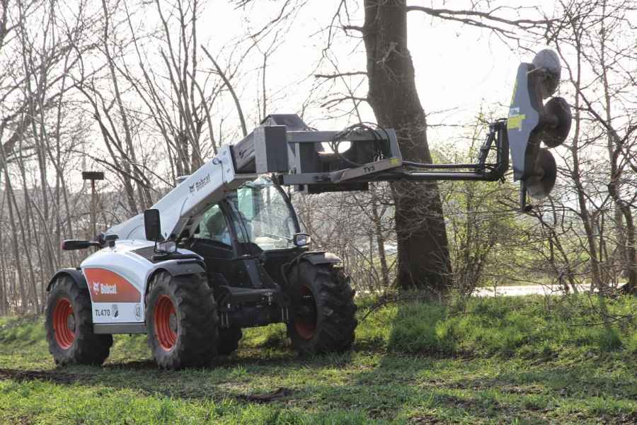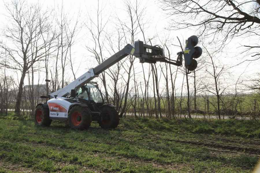 Dank der insgesamt 1,2 m hohen Schneideblätter, der maximalen Arbeitshöhe von mehr als ausreichenden 8,5 m sowie des zügigen Arbeitsablaufes, können die Schnittarbeiten nun sicher und schnell durchgeführt werden. Hierbei sind Sägearbeiten bei Aststärken bis zu 15 cm bei langsamer Fahrt und stärkere Äste durch hydraulisches Schwenken der Säge im Stand möglich. Für das Einsammeln des Schnittguts wird ebenfalls der TL470 verwendet. Hierfür wird ein Greifer statt der Säge eingesetzt, der - laut eigener Aussage des Landwirts - durch die Schnellverschlüsse am Teleskopkopf in weniger als 5 min. montiert ist. Das schont Arbeitskapazitäten und Betriebskosten, erhöht die Arbeitssicherheit und letztlich die Produktivität.