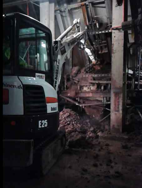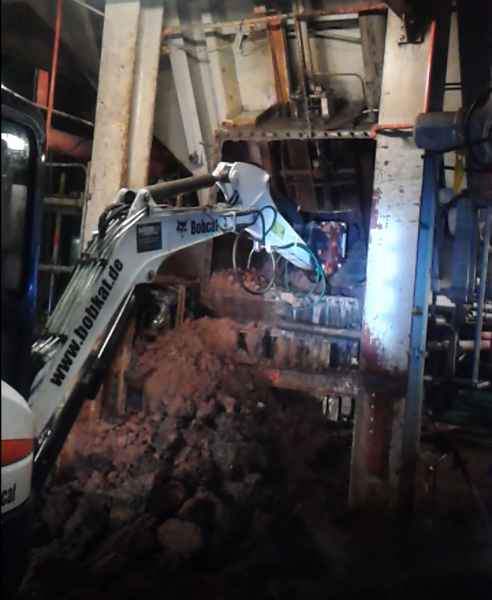 Einsatzbeispiel: In einem Kraftwerk in der Niederlanden ist es zu einer Verstopfung durch Ablösung von Schlacke gekommen. Die Herausforderung bestand darin, die Schlacke im Brennofen zu zerkleinern und durch die vergleichweise kleine Öffnung heraus zu transportieren.