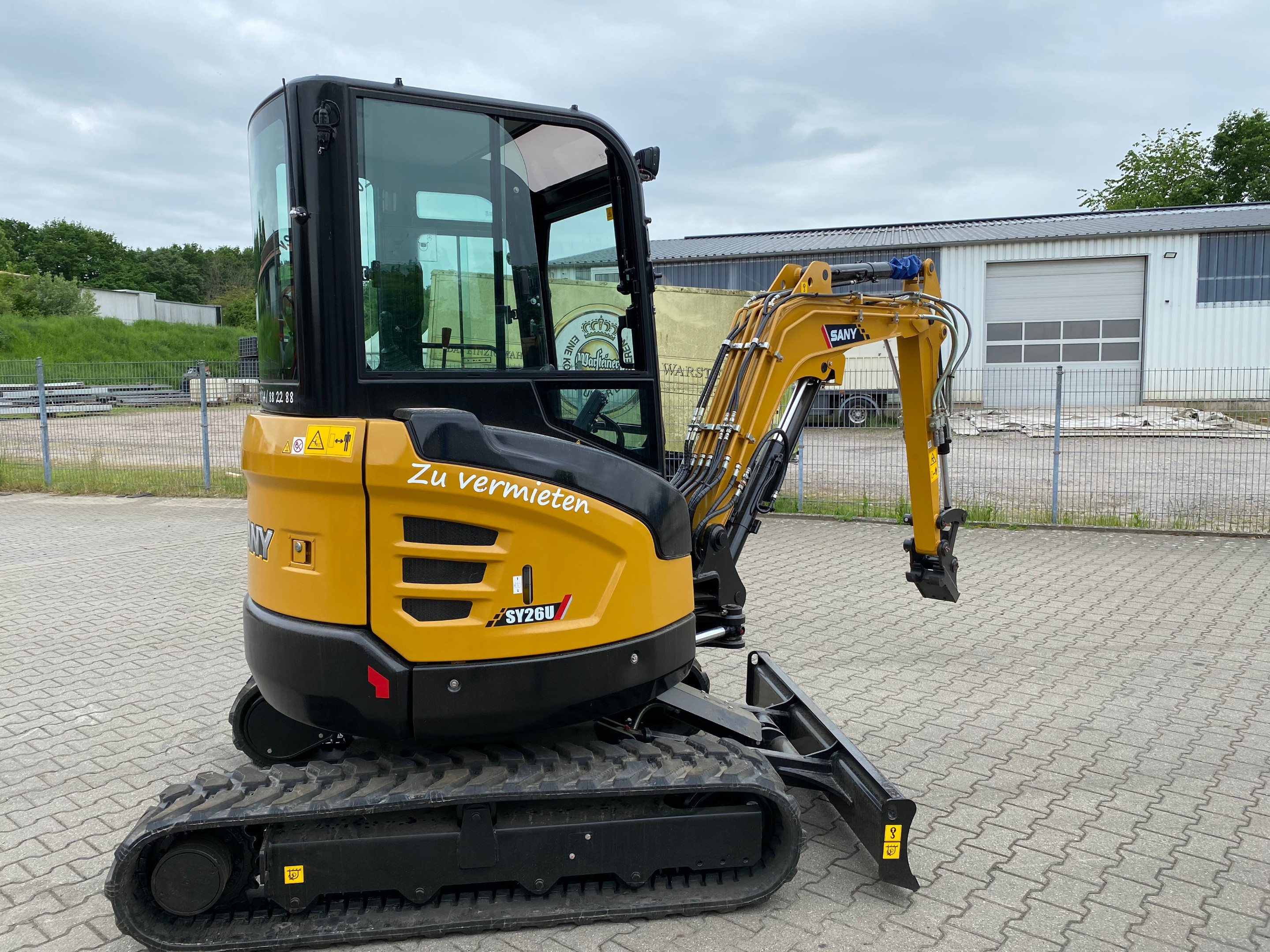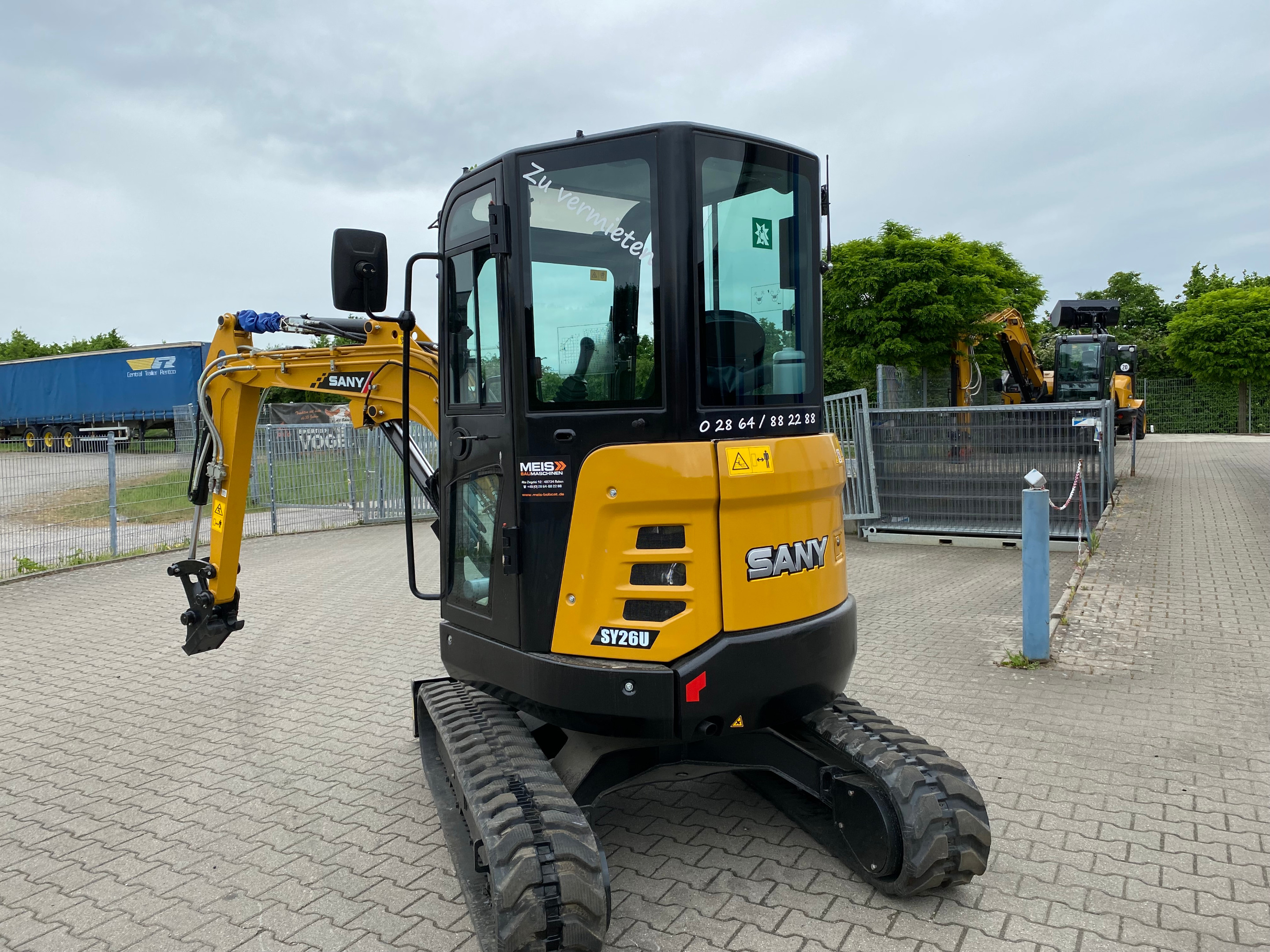 Meta Description: SANY SY26U Minibagger Baujahr 2022, Einsatzgewicht 2.680 kg, Motorleistung 15,2 kW. Sofort verfügbar bei Meis Baumaschinen in Reken.